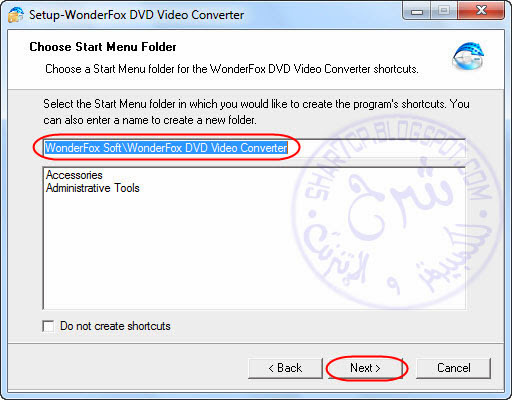 وهنا يظهر مسار البرنامج الذي سيكون موجود فيه إختصار أيكونة البرنامج من قائمة